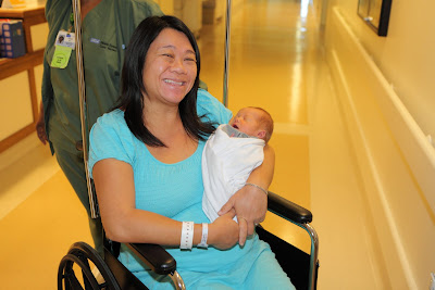 Our sweet Blake has been an amazing baby so far - so mellow and quiet ... easy and completely enjoyable. Our first night, we had a little scare with him vomiting up amniotic fluid, which I found out was actually normal. After that incident, we sent our little one off to the nursery so that Andrew and I could get some sleep instead of constantly worrying about every single sound Blake made. Apparently, everyone was tired - because 6 hours later, Andrew and I woke up and we hadn't seen Blake since 3am despite requesting him to be returned to our room for a feeding at 6am! Apparently, there was a mix-up with Elena and Priska, the overnight and day nurse ... so Blake slept 6 straight hours that first night ... and so did we - and I felt like a new mommy! Each night, we continued to send Blake to the nursery but because of his potential jaundice, we saw him every 3 hours to be nursed.